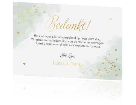 Bedankkaart Bruiloft Eucalyptus Gouden Hartjes Kaartje2go