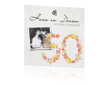 Uitnodiging Voor Gouden Huwelijk Met Sierlijke Bloemen