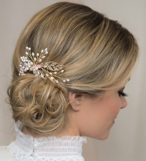 Blush Gouden Bruiloft Haren Kammen Opal Haarstukje Roze Etsy