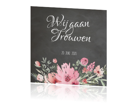 Enkele Uitnodiging Bruiloft Krijtbord En Watercolor Bloemen