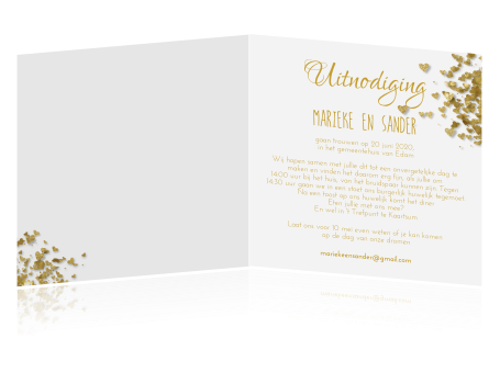 Stijlvolle Uitnodiging Bruiloft Met Goud Look Confetti Hartjes