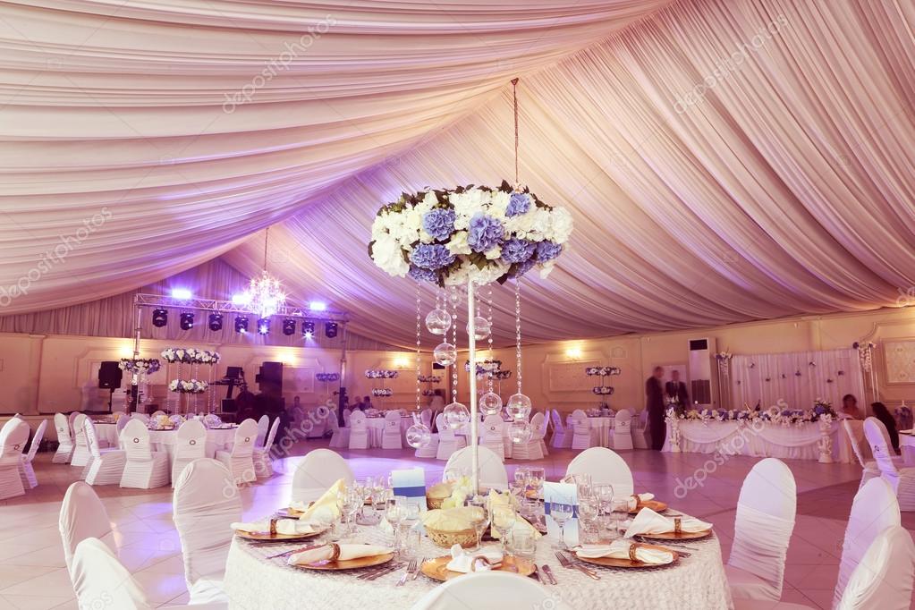 Wedding Flowers Decoration In The Restaurant Stock Photo
