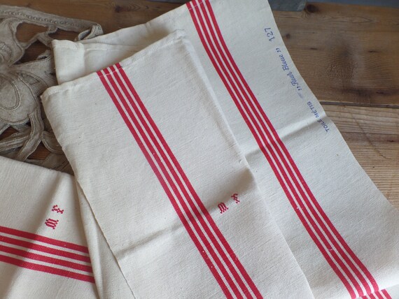 Vintage Franse Linnen Keukendoek Theedoek Met Monogram Mf Etsy