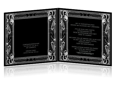 Great Gatsby Uitnodiging Huwelijk Art Deco Stijl Zilver