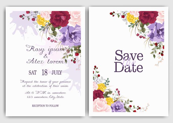 Bruiloft Uitnodigingskaart Met Kleurrijke Bloemen En Bladeren