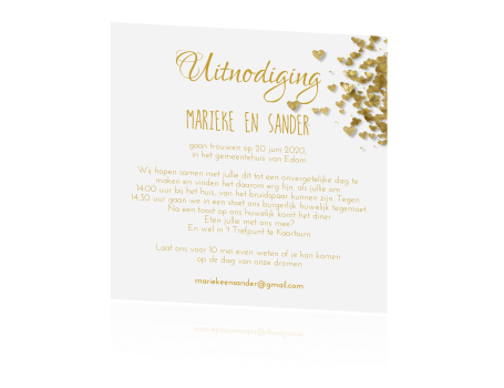 Enkele Uitnodiging Bruiloft Met Gouden Confetti Hartjes