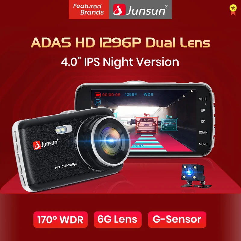 Junsun H7 Auto Dvr Camera Dual Lens 4 0 Full Hd 1296p Register
