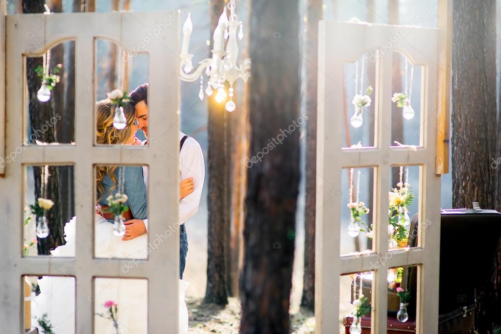 Bruiloft In Landelijke Stijl In Het Bos Stockfoto
