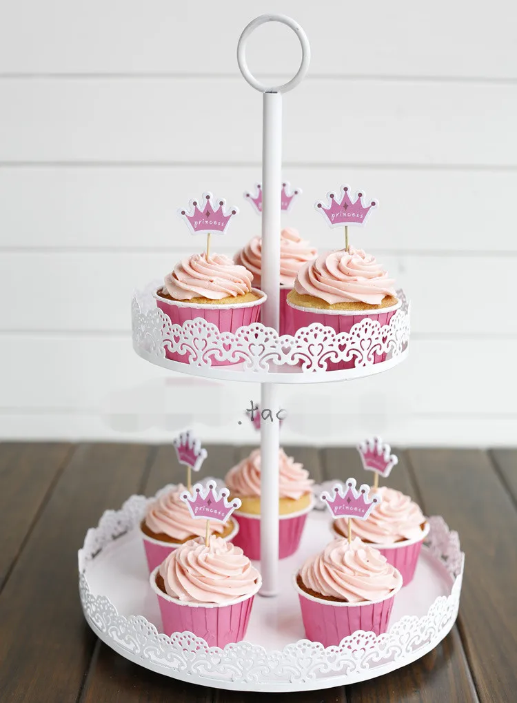 2 Tiers Wit Kant Ijzer Cake Stand Cupcake Houder Bruiloft