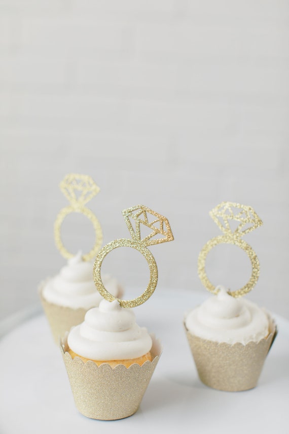 Gouden Glitter Ring Cupcake Toppers Bruiloft Cupcake Toppers Etsy