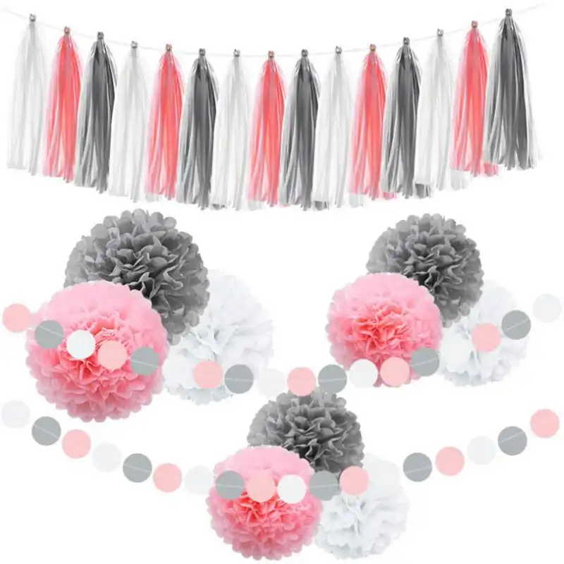 23pcs Party Decoraties Papieren Bloem Bal Papieren Kwastje Set