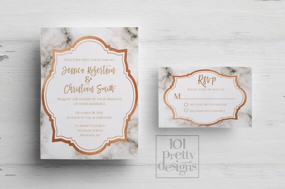 Rose Gouden Bruiloft Uitnodiging Witte Marmeren Bruiloft Etsy