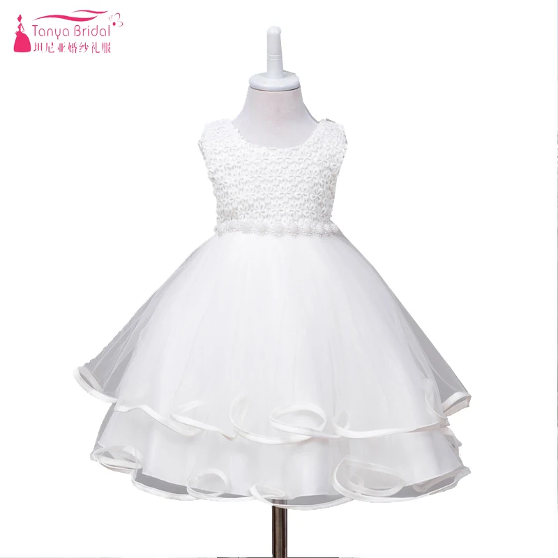 Pure Wit Meisje Bloem Jurken Voor Bruiloft En Partij Met Parels En