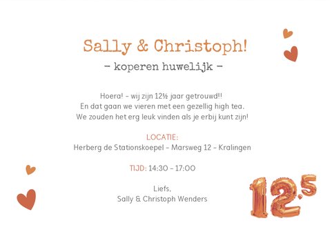 Uitnodiging 12 5 Jaar Getrouwd Koperen Huwelijk