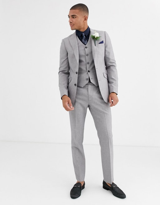 Asos Design Bruiloft Skinny Kostuum In Crosshatch In Grijs Asos