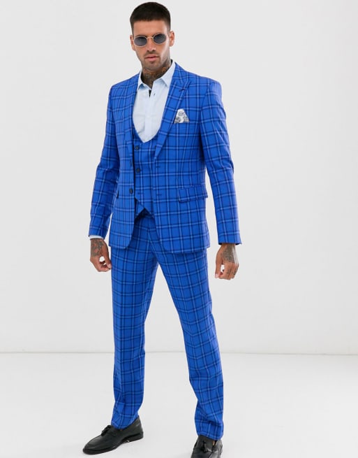 Harry Brown Bruiloft Slim Fit Kostuum In Opvallende Blauw Met