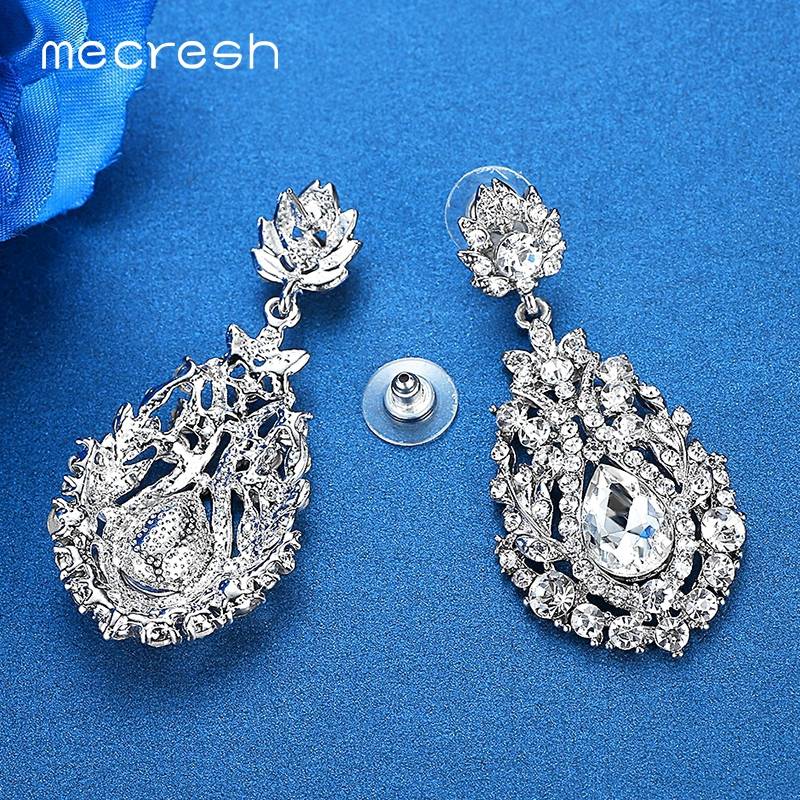 Mecresh Big Teardrop Crystal Bruiloft Lange Oorbellen Voor Vrouwen