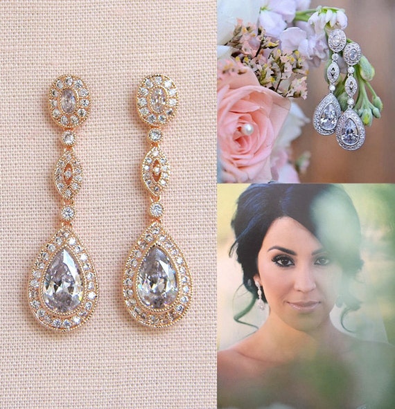 Rose Gouden Bruids Oorringen Bruiloft Oorbellen Lange Etsy