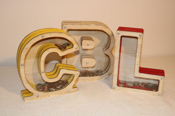 Letter Bank Kids Bank Money Box Coins Laser Cut Birch Plywood Etsy