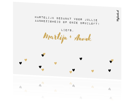 Bedankkaart Trouwen Hartjes Goud Zwartwit