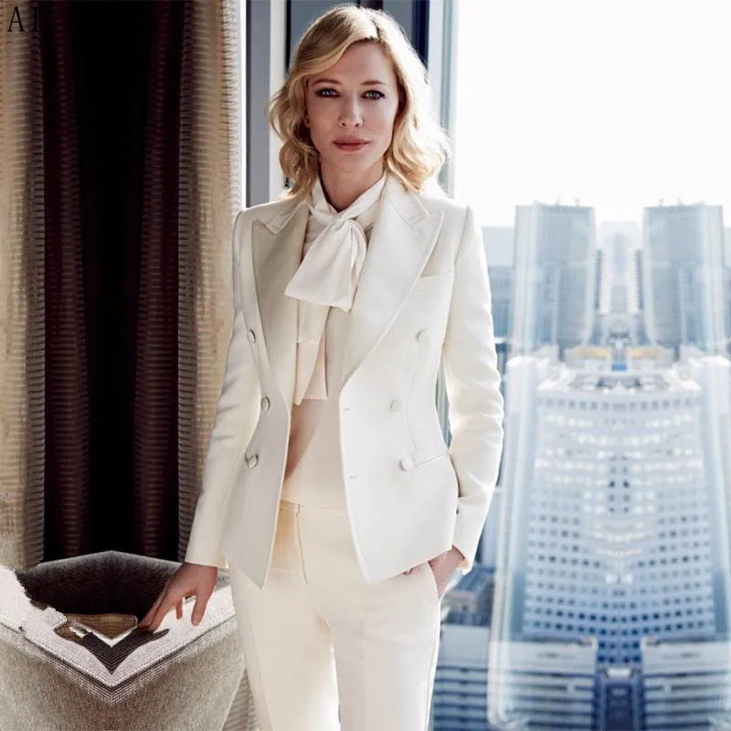Custom Vrouwen Pakken Formele Kantoor Pak Werk Ivoor Dames