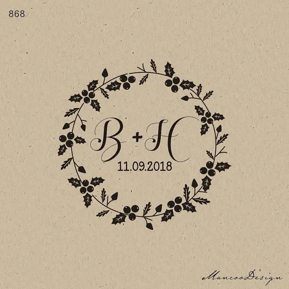 Stempel Bruiloft Initials In Krans Monogram Aangepaste Bewaar
