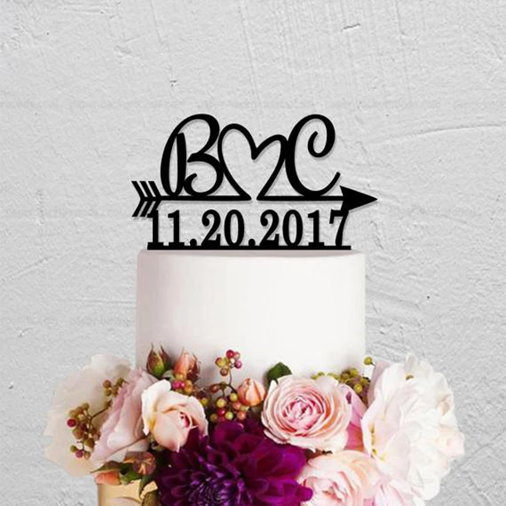 Bruiloft Naam Mumber Cake Topper Initialen Pijl Datum Acryl