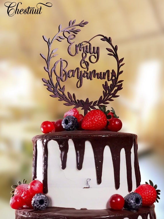 Naam Taart Topper Bruiloft Met Krans Namen Bruidstaart Topper Etsy