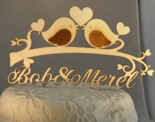 Houten Taarttopper Vogels Met Naam Jose Bakery