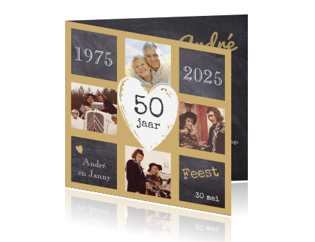 Nodig familie en vrienden uit voor jullie vijftigjarig jubileum met deze originele uitnodigingskaart.