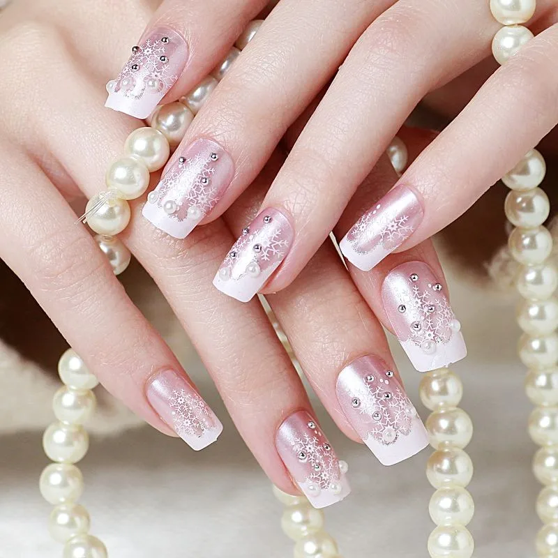 24 Stks Senior Bruid Bruiloft Nep Nagels Normale Lengte Franse